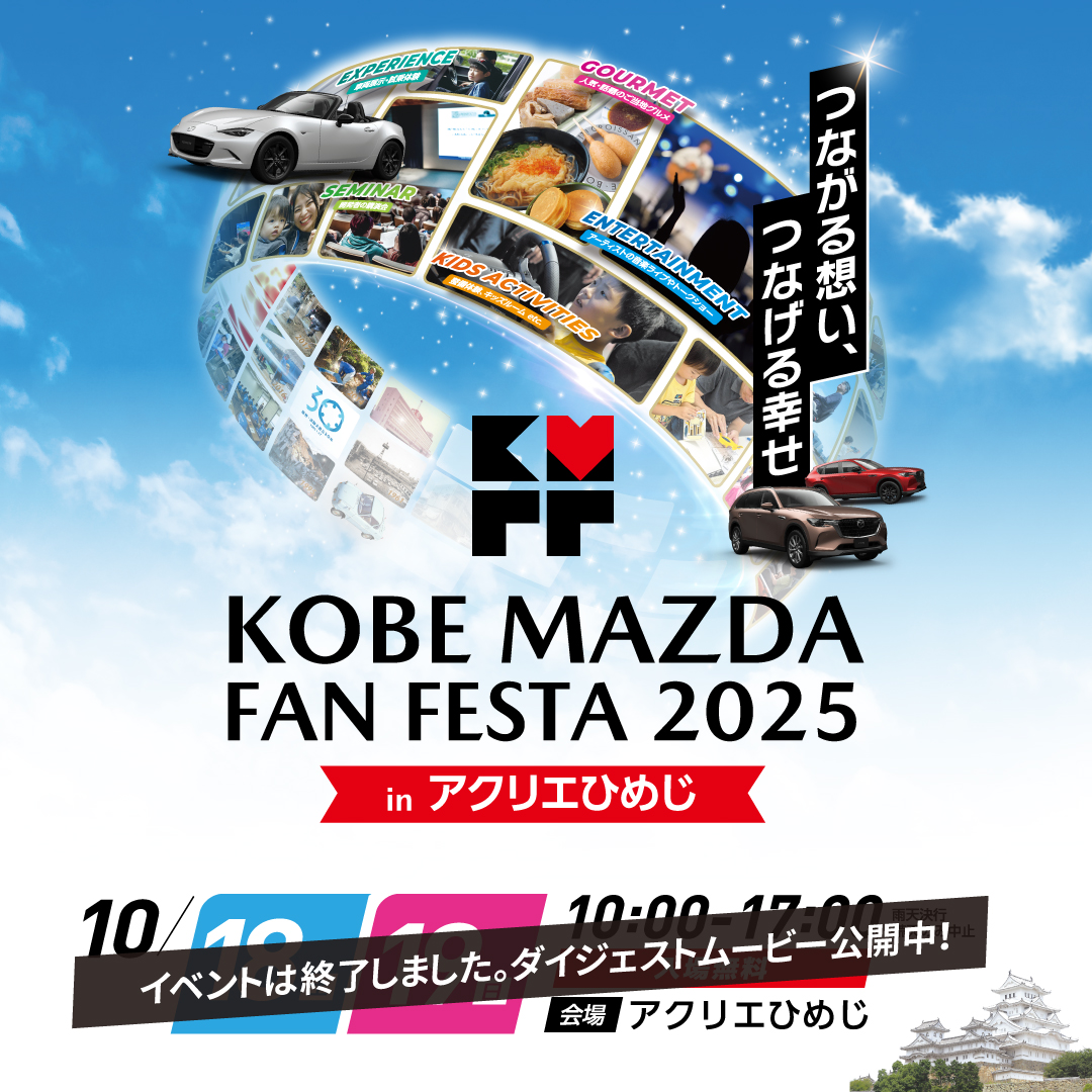 神戸マツダ姫路東店では、12/20(土)21(日)の2日間「姫東って、愛だ。Vol.2~5th Anniversary~」...