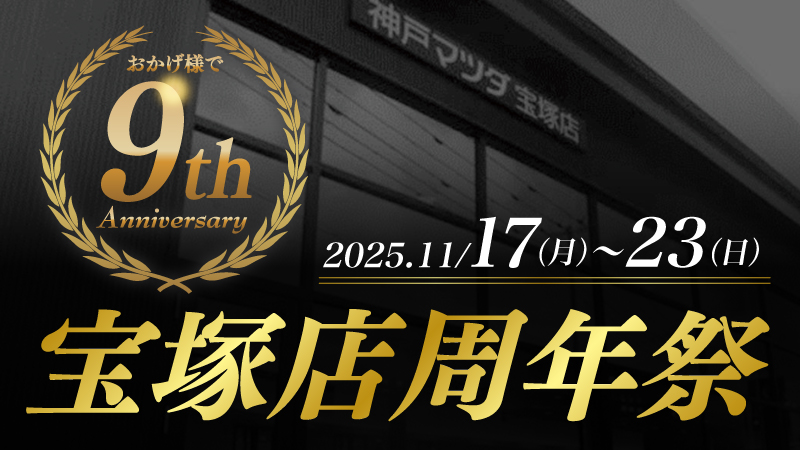 おかげ様で神戸マツダ宝塚店は9周年を迎えることができました!日頃のご愛顧に感謝を込めて、11/17(月)~23(日)の期間...