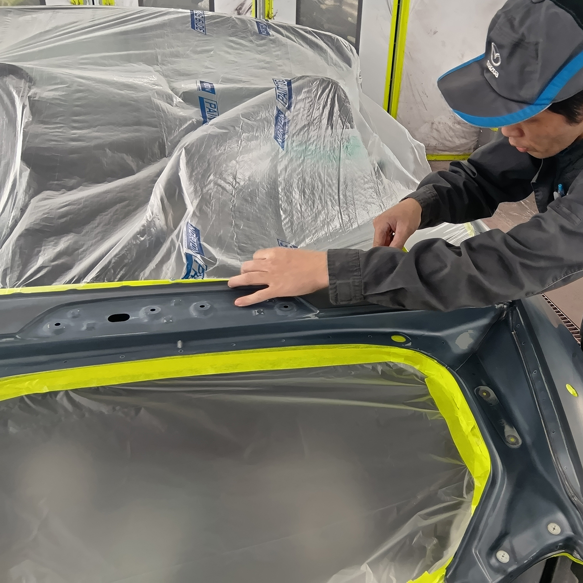 | 仕事の内容 | 塗装前の車にテープを使って養生する作業。 |
