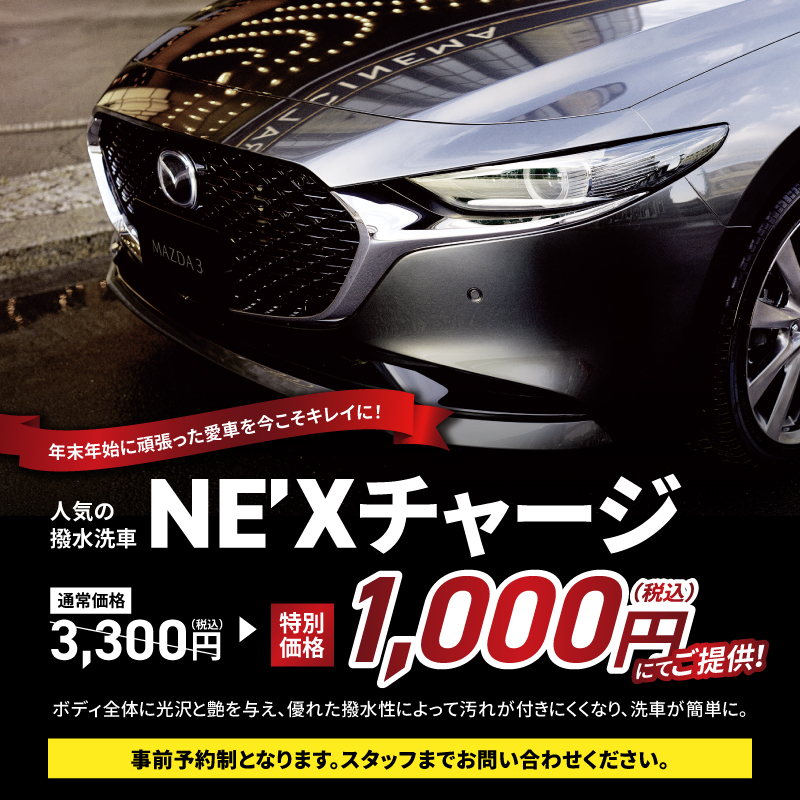フェア期間中は、撥水洗車 NE’Xチャージを特別価格1,000円(税込)にてご提供!