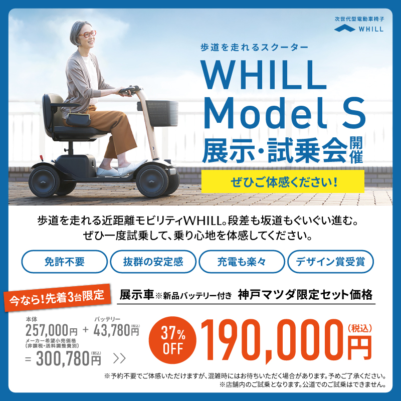今ならWHILL Model Sの展示車※新品バッテリー付きが神戸マツダ限定セット価格でご用意!