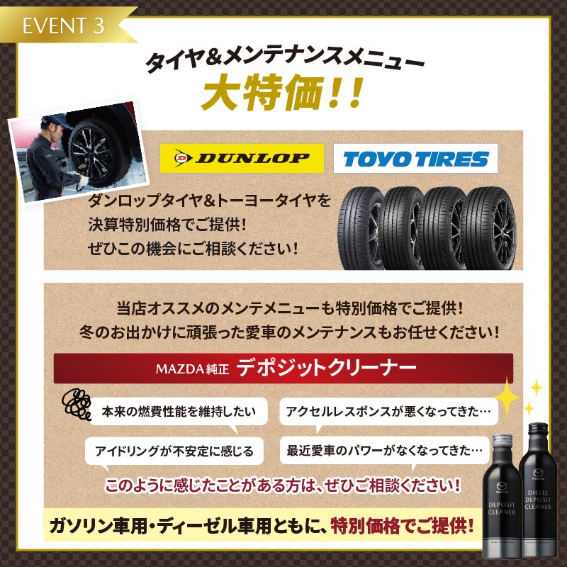 タイヤ&メンテナンスメニューも大特価!