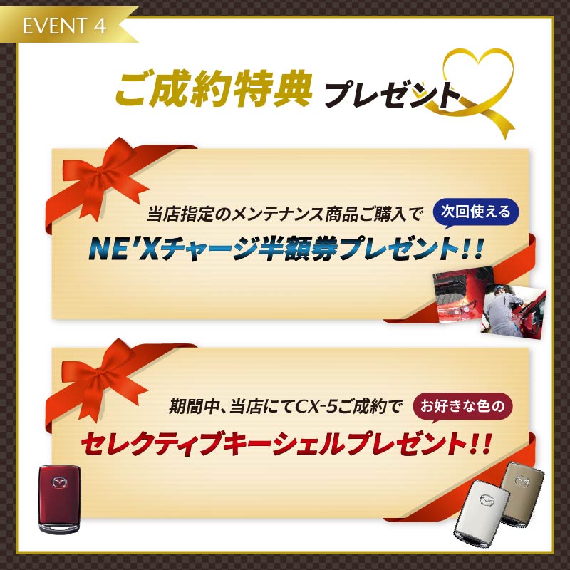 ■当店指定のメンテナンス商品をご購入で、次回使える「NE’Xチャージ半額券」プレゼント!