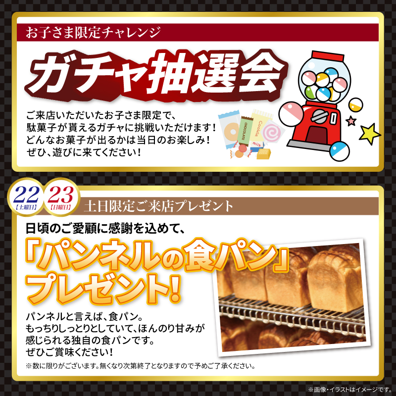 22(土)23(日)にご来店いただいたお客様には「パンネルの食パン」をプレゼント!