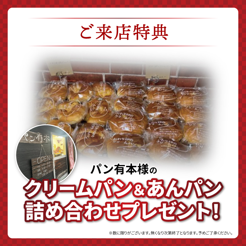 フェア期間中にご来店いただいたお客様には、パン有本様の「クリームパン&あんパン詰め合わせ」をプレゼント!