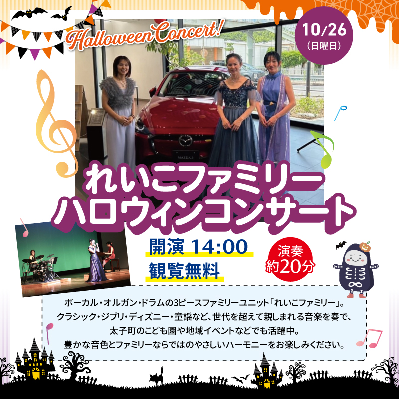 10/26(日)14:00~はれいこファミリーさんによる「ハロウィンコンサート」を開催!