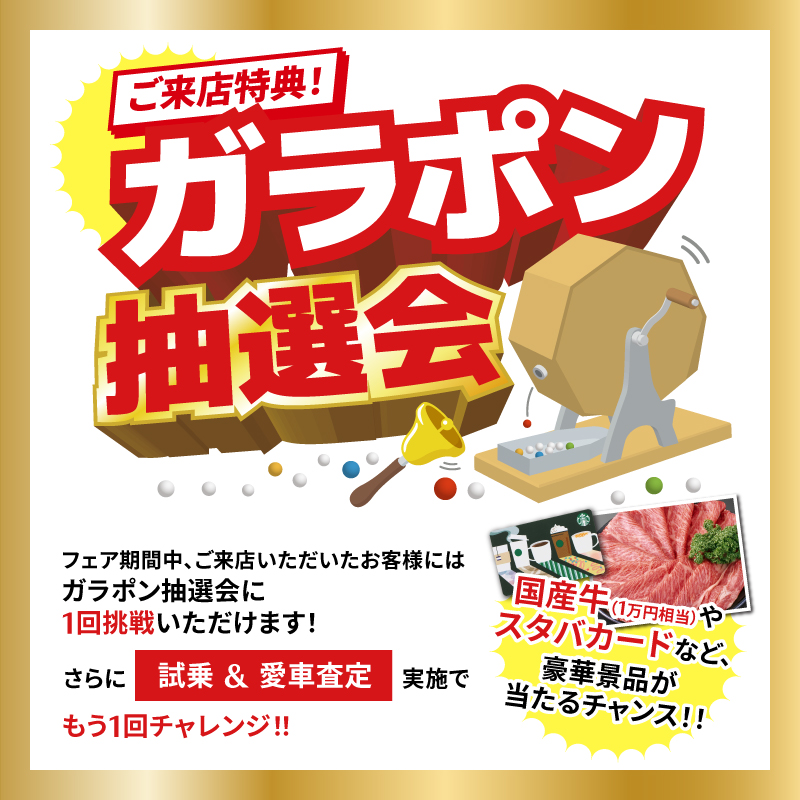 フェア期間中、ご来店いただいたお客様にはガラポン抽選会に1回挑戦いただけます!