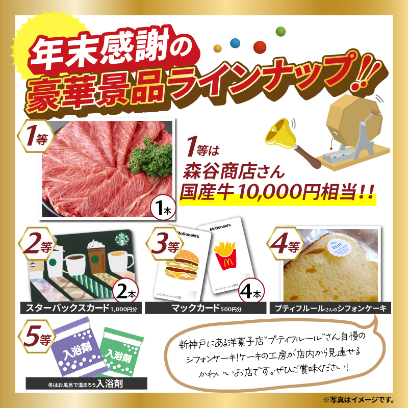 ガラポン抽選会の景品は、年末感謝の豪華ラインナップ!