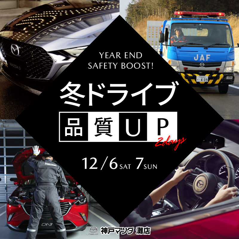 神戸マツダ灘店にて、12月6日(土)7日(日)の2日間、「~Year End Safety Boost!~ 冬ドライブ品質UP 2days」を開催いたします!