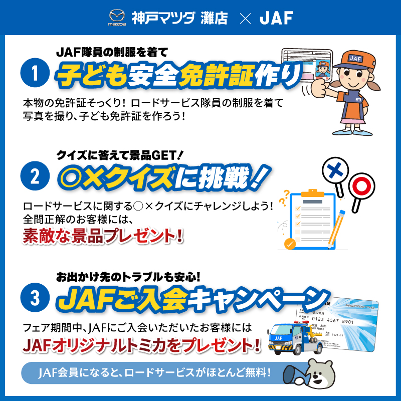 フェア期間中、JAFにご入会いただいたお客様には、JAFオリジナルトミカをプレゼント!