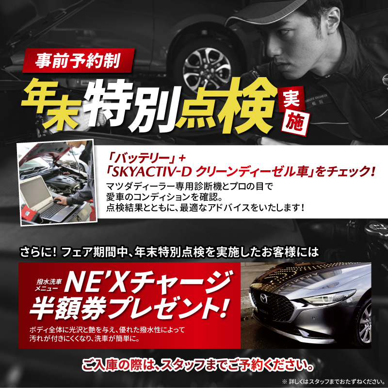 さらに!フェア期間中、年末特別点検を実施したお客様には「NE’Xチャージ半額券」をプレゼント!