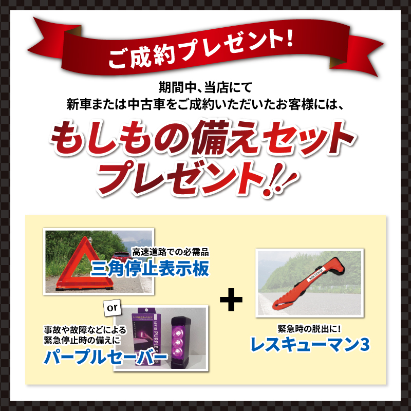 「三角停止表示板」or「パープルセーバー」と「レスキューマン3」のもしもの備えセットをプレゼント!