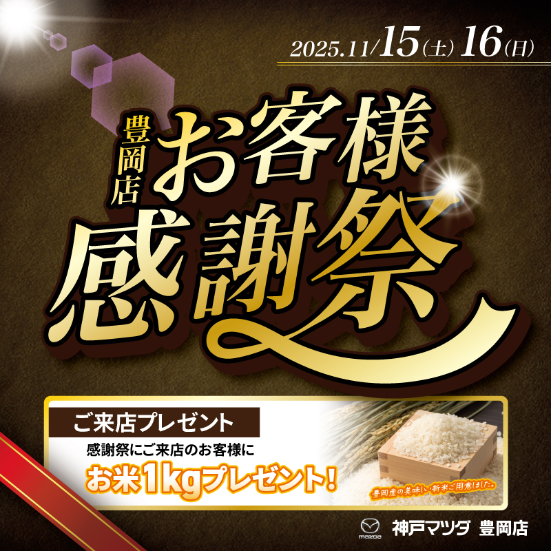 神戸マツダ豊岡店にて、11月15日(土)16日(日)の2日間「お客様感謝祭」を開催いたします!