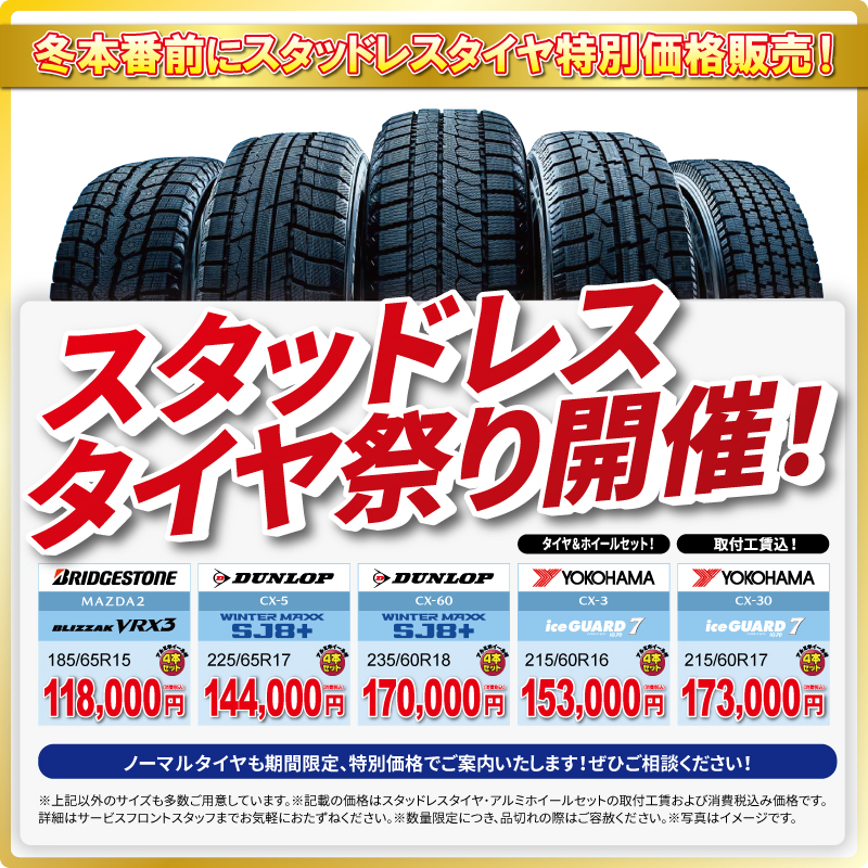 冬本番前にスタッドレスタイヤを特別価格でご提供!